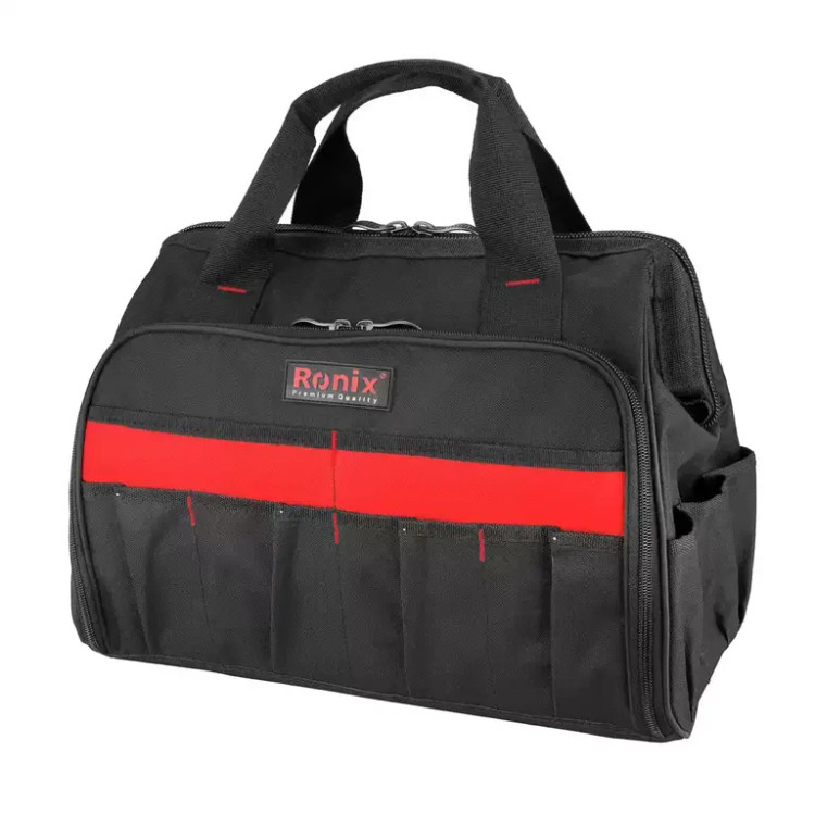 شاید شما از آن دست افرادی باشید که ترجیح میدهید جعبهی ابزارتان را در دست نگیرید و تمایلی بیشتری به استفاده از کیف ابزار داشته باشید. کیفهای ابزار باوجود استحکام کمتر نسبت به جعبههای ابزار، قابلیت جابجایی راحتتری دارند. شرکتهای مختلفی چون «رونیکس» (Ronix)، «نووا» (Nova) و «ام پی» (Mp) دست به تولید کیفهای ابزار زدهاند. رونیکس 3 مدل کیف ابزار با مشخصات و ابعاد متفاوت را تولید کرده است. بزرگترین کیف ابزاری که این شرکت تولید کرده، مدل RH-9114 است. این محصول با ابعاد27×22×40 سانتیمتر و وزن آن 1300 گرم تولید میشود. وجود 18 جیب خارجی، 6 جیب داخلی و در نظر گرفتن 9 جیب برای قرار دادن آچار، این محصول را متمایز از سایر کیف ابزارهای رونیکس قرار داده است. کیف ابزار مدل RH-9114 حداکثر 17 کیلوگرم وزن را تحمل میکند. جنس برزنتی کیف هم باعث افزایش مقاومت آن میشود. برای نگهداری از ابزارهای خود و حمل آن روی دوش این محصول شرکت رونیکس را به شما پیشنهاد میکنیم.