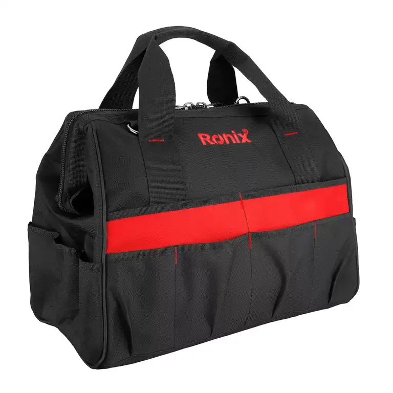 شاید شما از آن دست افرادی باشید که ترجیح میدهید جعبهی ابزارتان را در دست نگیرید و تمایلی بیشتری به استفاده از کیف ابزار داشته باشید. کیفهای ابزار باوجود استحکام کمتر نسبت به جعبههای ابزار، قابلیت جابجایی راحتتری دارند. شرکتهای مختلفی چون «رونیکس» (Ronix)، «نووا» (Nova) و «ام پی» (Mp) دست به تولید کیفهای ابزار زدهاند. رونیکس 3 مدل کیف ابزار با مشخصات و ابعاد متفاوت را تولید کرده است. بزرگترین کیف ابزاری که این شرکت تولید کرده، مدل RH-9114 است. این محصول با ابعاد27×22×40 سانتیمتر و وزن آن 1300 گرم تولید میشود. وجود 18 جیب خارجی، 6 جیب داخلی و در نظر گرفتن 9 جیب برای قرار دادن آچار، این محصول را متمایز از سایر کیف ابزارهای رونیکس قرار داده است. کیف ابزار مدل RH-9114 حداکثر 17 کیلوگرم وزن را تحمل میکند. جنس برزنتی کیف هم باعث افزایش مقاومت آن میشود. برای نگهداری از ابزارهای خود و حمل آن روی دوش این محصول شرکت رونیکس را به شما پیشنهاد میکنیم.