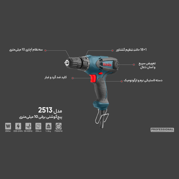 پیچ گوشتی برقی ترکمتردار 280 وات رونیکس مدل 2513