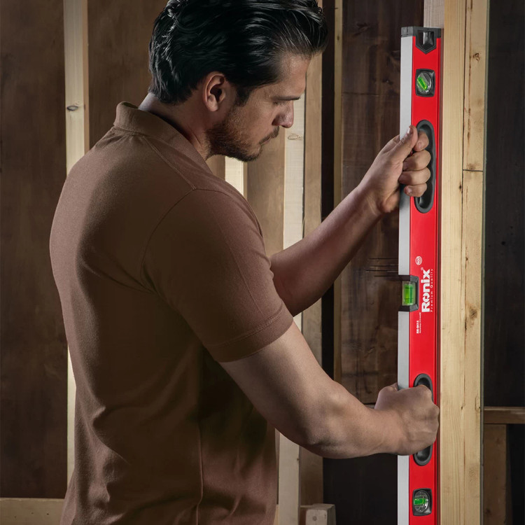 تراز بنایی 80 سانتی متری رونیکس (دقت 0.5 میلیمتر) مدل RH-9414، دارای بدنهای آلومینیومی، سبک و محکم است که دامنه کاربرد این ابزار را بیشتر میکند. برای ترازکردن سطوح مختلف، دکوراسیون منزل، ساخت قطعات چوبی و فعالیتهای نجاری، زیباسازی فضا و ... از تراز استفاده میشود.