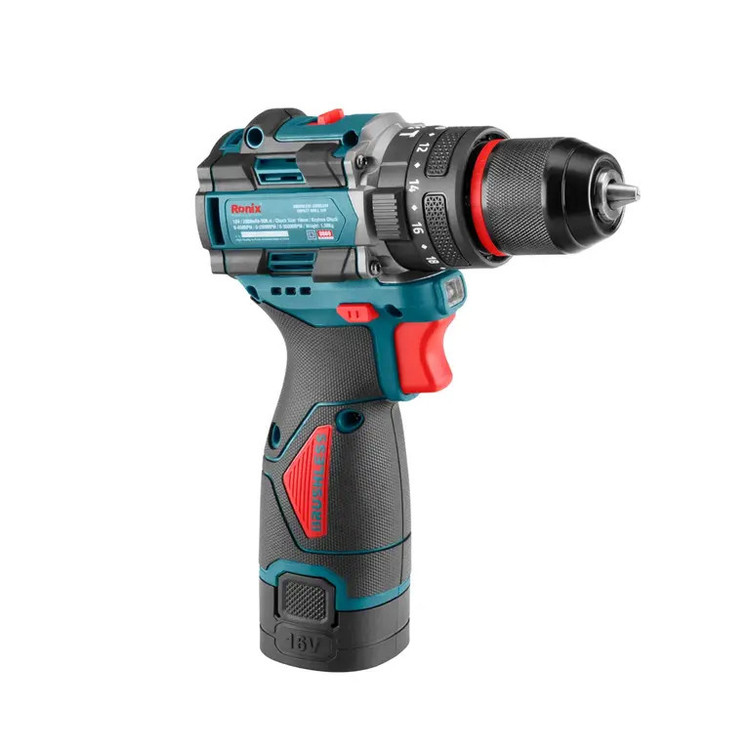 دریل چکشی شارژی رونیکس مدل 8669 رونیکس مجهز به موتور براشلس ضد غبار و ضد آب است و میان اجزا و قطعات آن در هنگام کار اصطکاک کمتری صورت میگیرد. در نتیجه، دستگاه داغ نمیشود و طول عمر ابزار و باتری را افزایش پیدا میکند. باتری لیتیوم یونی 16 ولتی، سهنظام اتوماتیک و نشانگر طول عمر باتری از دیگر ویژگیهای این دریل چکشی رونیکس هستند.