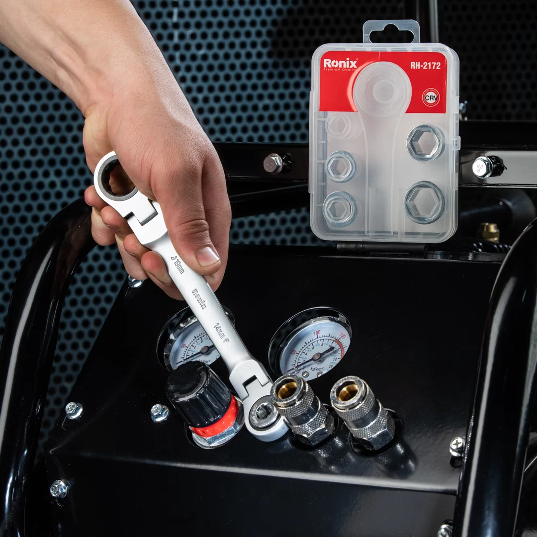 آچار جغجغه تاشو ابزاری کاربردی در کارگاههای مکانیکی، الکترونیکی، ساختمانسازی و ... است. این ابزار برای کار در فضاهای تنگ و با دسترسی سخت انتخابی ایدهآل است. ست سری آچار جغجغه دسته تاشو رونیکس مدل RH-2172 از کروم-وانادیوم سختکاریشده ساخته شده و دوام و مقاومت بالایی دارد.