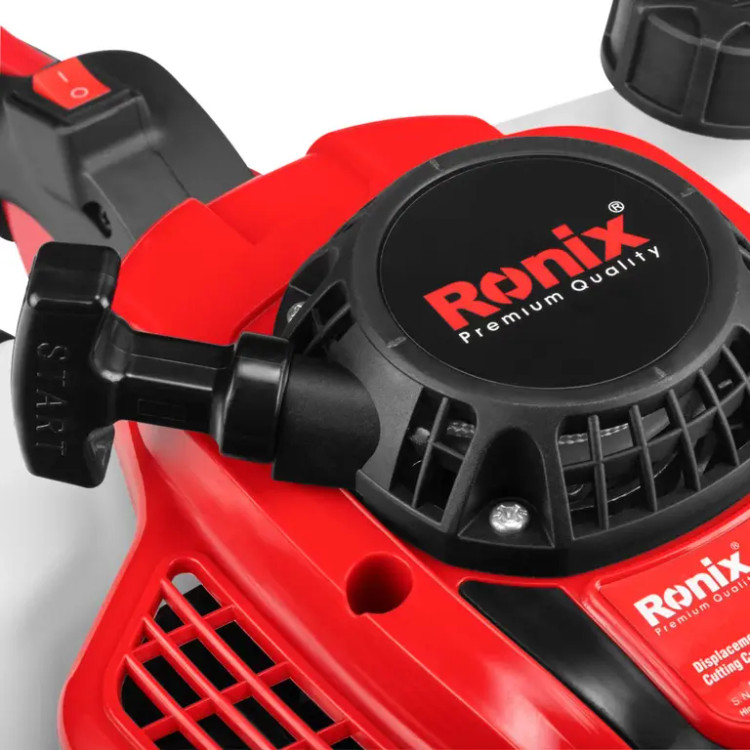 از دستگاه شمشادزن بنزینی 4965 رونیکس برای کوتاهکردن چمنهای بلند با ساقههای ضخیم یا شمشادهای فضای سبز استفاده میشود. سیستم راهاندازی اولیه این دستگاه آسان بوده و موجب راحتی کار با آن میشود. دو تیغۀ این ابزار بر روی هم سوار میشوند و با حرکت متقاطع و ریلی آنها میتوانید علفها و ساقهها را کوتاه کنید. فاصله بین لبه تیغهها در این دستگاه 35 میلیمتر است.