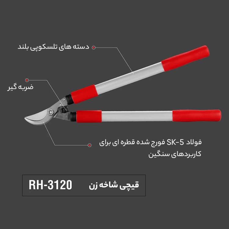 قیچی شاخهزن 90 سانتیمتری تلسکوپی RH-3120 رونیکس، به دستههای تلسکوپی از جنس پلاستیک PP و TPR مجهز است که موجب افزایش راحتی در حین برش و بهحداقلرساندن خستگی در هنگام استفادههای طولانیمدت میشود.
