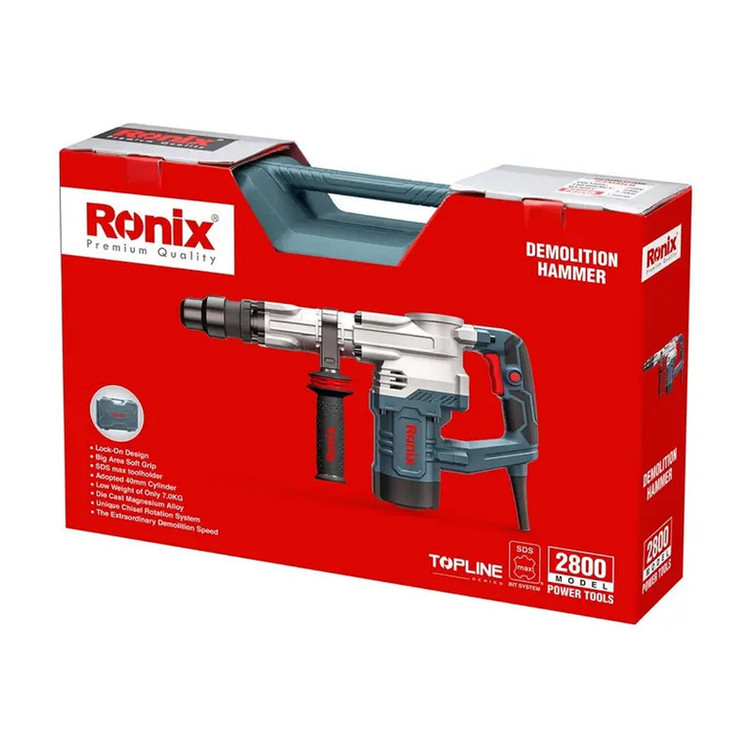 چکش تخریب 2800 رونیکس مجهز به یک موتور 1300 واتی متشکل از آرمیچر و بالشتکهای صنعتی است. این موتور با تولید توان ضربه 20 ژول، 2400 ضربه در دقیقه را تولید میکند. سیستم قفلکن خودکار این دستگاه، از آرماتور در حین انجام کار محافظت میکند. طراحی ساده و ارگونومیک این دستگاه آن را به گزینهای ایدهآل برای انجام عملیات تخریب آجر، سنگ و بتن تبدیل کرده است. کاربران میتوانند با کمترین احساس خستگی از این ابزار استفاده کنند.