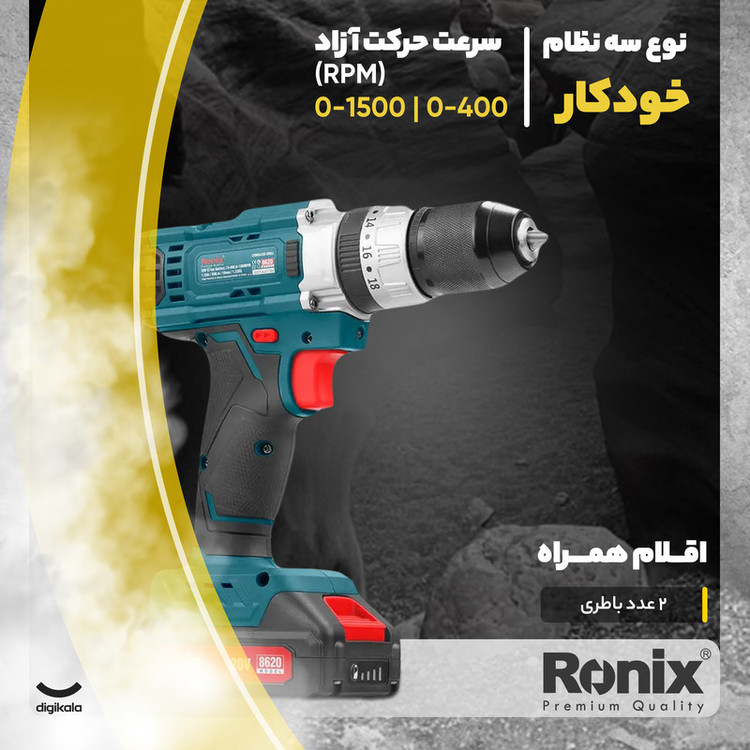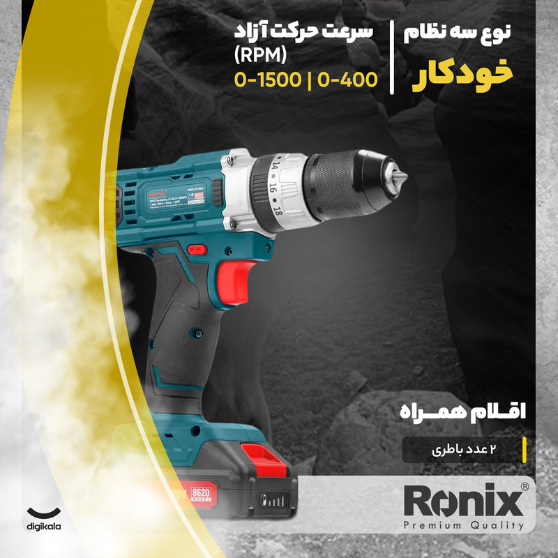 این ابزار شارژی رونیکس، دارای یک سه نظام اتوماتیک قدرتمند 10 میلیمتری و تمام فلزی است که مقاومت بسیار بالایی به فشار حاصل از فعالیت در سطوح متراکم دارد. طراحی ارگونومیک و روکش لاستیکی بدنه، سهولت استفاده از این ابزار را دوچندان کرده و از آن در برابر ضربات احتمالی محافظت میکند.