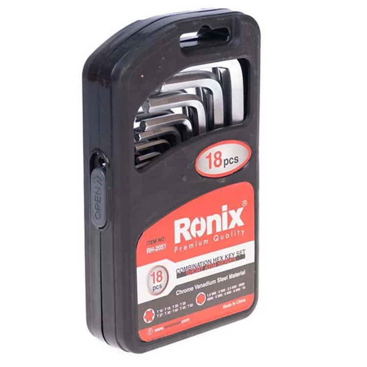 محصول RH-2051 رونیکس ابزاری کامل و کار راه بنداز است. مجموعهای 18 عددی متشکل از 9 آچار آلن شش گوش و 9 آچار آلن ستارهای.