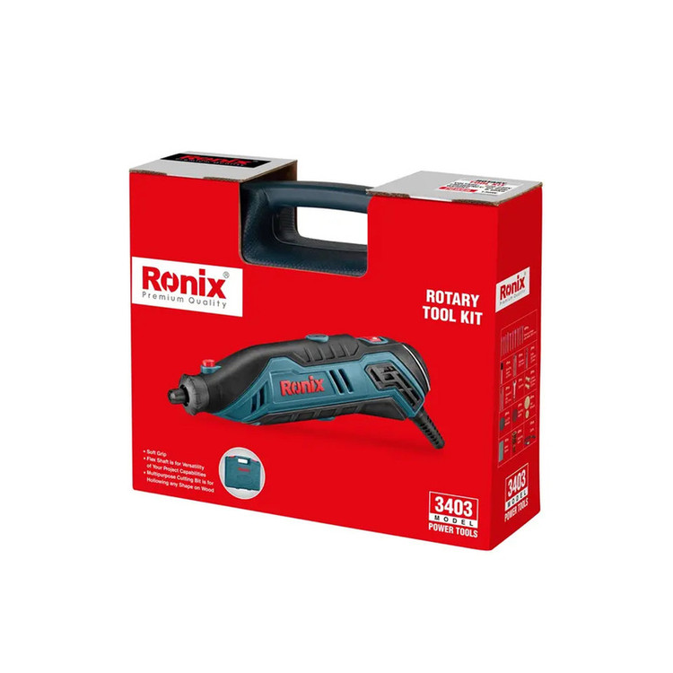 از کیت فرز برقی مینیاتوری 130 وات 3403 رونیکس، برای فعالیتهایی مانند سنبادهزنی، برش، کندهکاری، پرداخت، تمیزکاری، صیقلدادن و ... بر روی سطوح چوبی، آهن و استیل استفاده میشود. این فرز کوچک و بسیار سبکوزن رونیکس، مجهز به یک موتور قدرتمند 130 وات است که چرخشی در محدودهی 10000 تا 35000 دور در دقیقه را ایجاد میکند.