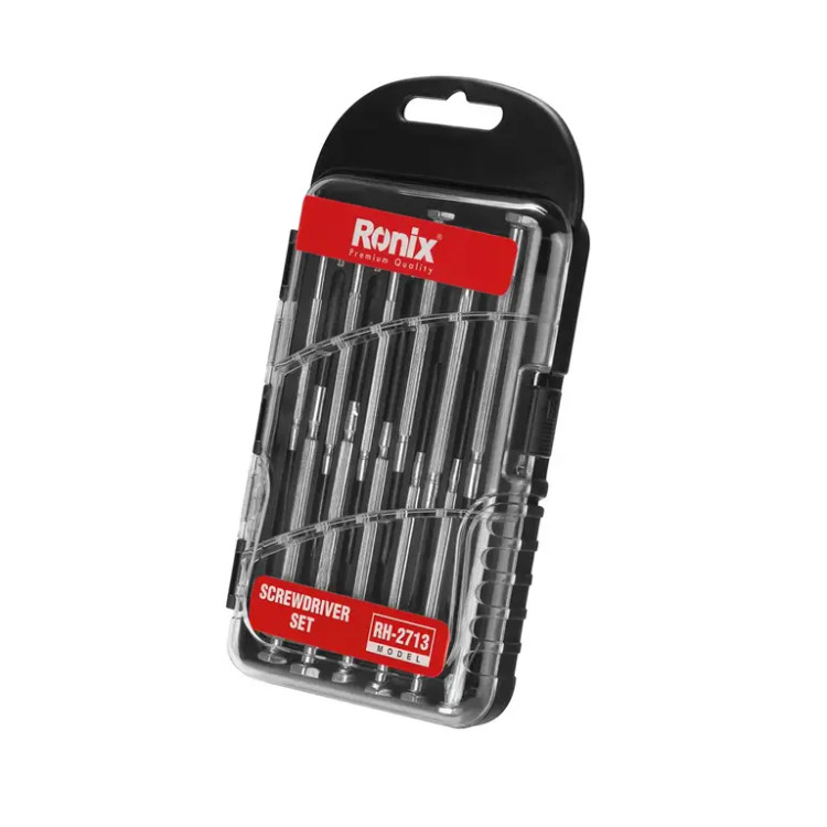 رونیکس انواع ست پیچ گوشتی ساعتی خود را با طراحی حرفهای و دوام بالا تولید میکند تا پاسخگوی نیازهای شما باشد. این مجموعه پیچ گوشتیها بهترین انتخاب در کاربردهای حساس الکترونیک و تعمیر دستگاههای ظریف هستند.