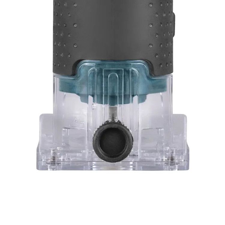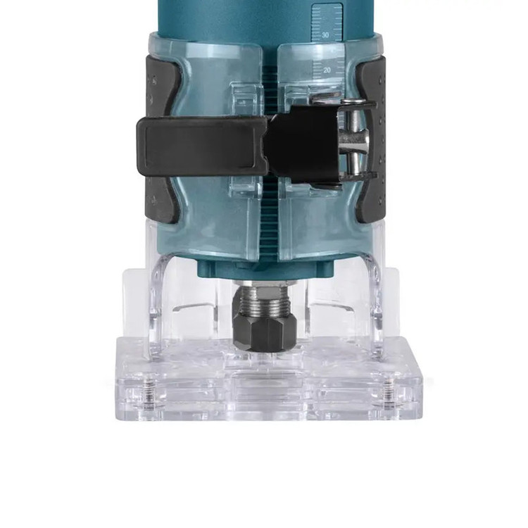 یکی از ویژگیهای مهم این دستگاه، سیستم تنظیم عمق برادهبرداری است که به شما امکان میدهد ارتفاع تیغه را با دقت و راحتی تنظیم کنید. همچنین، کفی شفاف دستگاه دید دقیقی از سطح چوب در حین کار فراهم میکند. ابزارگیر این لبهگیر برقی 6 میلیمتر است و برای انواع کاربردها مناسب است.