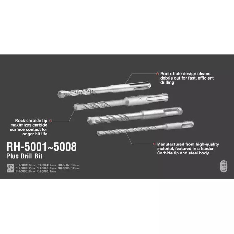 مته چهارشیار RH-5005 رونیکس، از بدنهای فولادی و نوکی قدرتمند و مقاوم ساخته شده است. شیارهای مارپیچی این مته SDS-PLUS موجب میشوند تا به بهترین انتخاب برای سوراخکاری در بتن، مصالح ساختمانی و سنگ تبدیل شود.