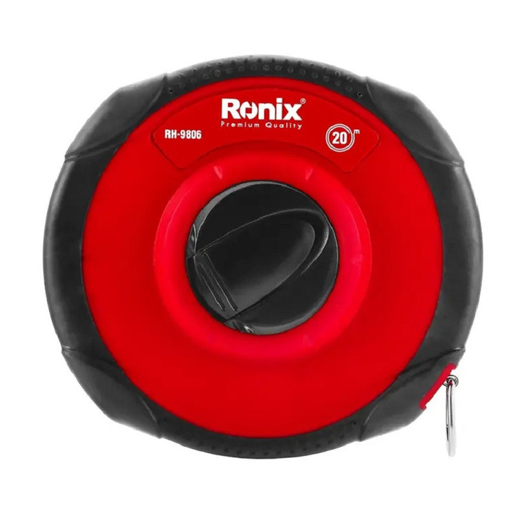 متر RH-9806 رونیکس مجهز به بدنه ای مقاوم در برابر ضربه است. نوار 20 متری این متر از جنس فایبرگلاس است که وزن آن را به طرز چشمگیری کاهش داده است و موجب شده است از مقاومت بالایی برخوردار شود. این متر مجهز به بدنه مقاوم و ضد ضربه است که در برابر آسیب های ناشی از ضربات وارد شده مقاوم است. واحد اندازهگیری طول در این متر برحسب سانتی متر است و در هر دو سمت نوار چاپ شده است. این نوار با روکش PVC به منظور افزایش دوام و نیز قابلیت شستشو پوشیده شده است.