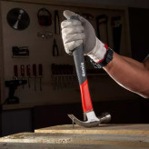 دسته این چکش از هسته فایبرگلاس جاذب ضربه تشکیل شده و با روکش پلیپروپیلن و لاستیک ضد لغزش پوشانده شده تا هم راحتی بیشتری برای کاربر ایجاد کند و هم از لرزش و لغزش دست جلوگیری شود. اتصال سر به دسته با رزین اپوکسی غیرقابل جداسازی انجام شده که مقاومت بالایی در برابر سایش و استفاده مداوم دارد.