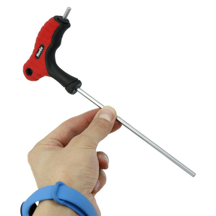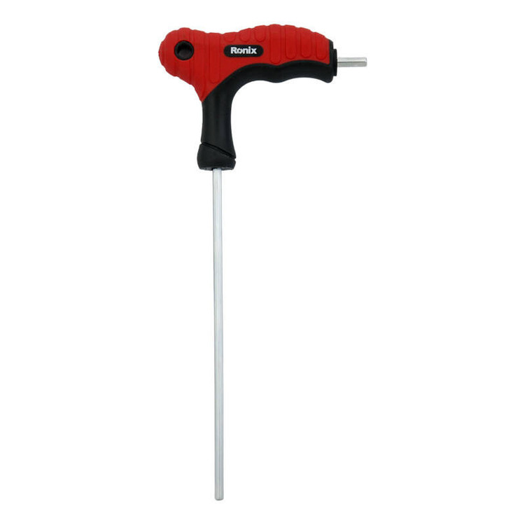 آلن دسته T ششگوش رونیکس مدل RH-2007 با سایز ۴ میلیمتر، ابزاری تخصصی برای باز و بستهکردن پیچهای ششگوش است و در صنایع فلزی، مونتاژ دستگاهها، تعمیرات مکانیکی، کارگاههای فنی و حتی کاربردهای خانگی کاربرد زیادی دارد. این ابزار از فولاد مقاوم 40Cr حرارتدیده ساخته شده و در برابر فشار و سایش مقاومت بالایی دارد.