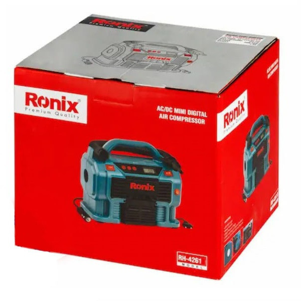 مینی کمپرسور باد RH-4261 رونیکس، با نازل و مبدلهای مختلف، برای تمیزکاری داخل خودرو، بادکردن توپ، تشک و سایر تجهیزات بادی به شما کمک کند. این مینی کمپرسور باد، قابلیت استفاده با ولتاژ 220 ولت برق شهری و 12 ولت فندکی خودرو را دارد. این پمپ باد رونیکس، مجهز به یک نازل باد 81 سانتیمتری و خرطومی بلوور 36 سانتیمتری است.