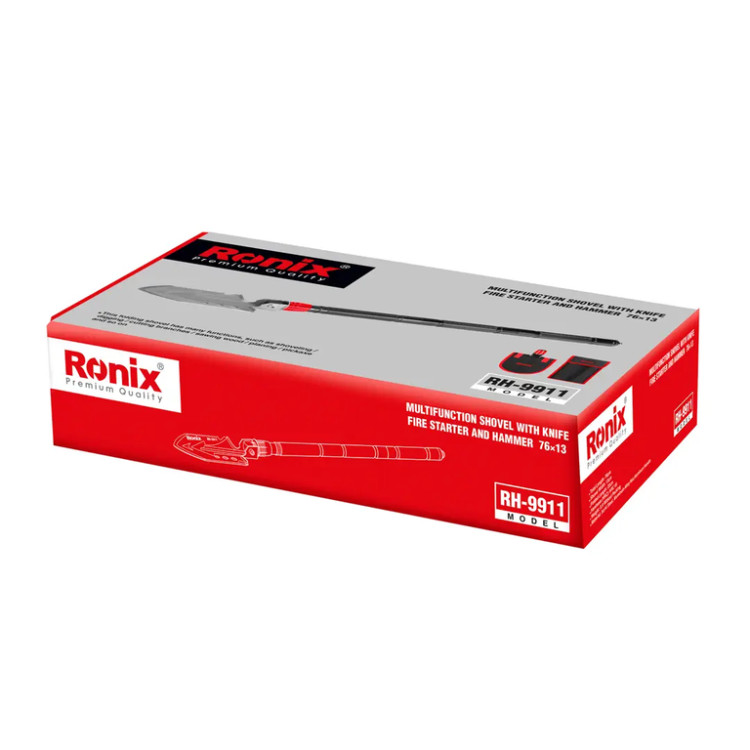 بیلچه چندکاره کمپینگ رونیکس مدل RH-9911 ابزاری کاربردی برای طبیعتگردی، کمپینگ، ماهیگیری و باغبانی است. این بیلچه تاشو با طراحی چندمنظوره، قابلیتهایی مانند بیل زدن، بریدن شاخهها، ارهکردن چوب، حفر زمین، کندهکاری، بیلچه و ... را ارائه میدهد.