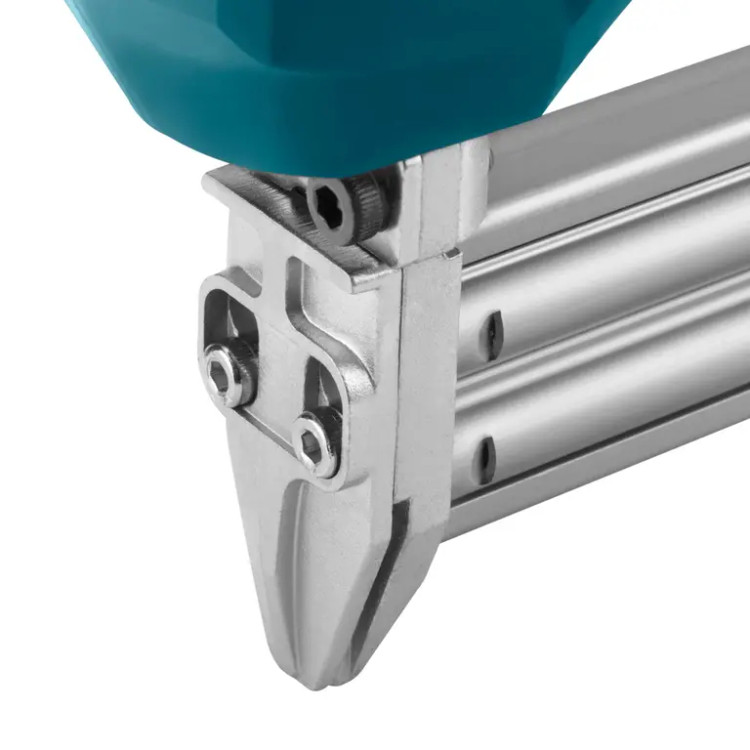 روکش ضد تعریق و ضد لغزش دسته این میخکوب، راحتی کاربر را تضمین کرده و از خستگی ناشی از کار مداوم جلوگیری میکند. همچنین، برای حفظ ایمنی کاربر حین کار، این دستگاه دارای سیستم قفل ایمنی است که از شلیک اتفاقی میخ جلوگیری میکند.