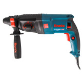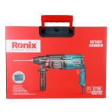 بتن کن برقی رونیکس مدل 2725 یکی از نمونههای با کیفیت و قدرتمند موجود در بازار کشور است. این دستگاه دارای موتور قدرتمند 850 واتی است که به آن این امکان را داده تا بتواند انواع سطوح و قطعات اعم از سنگ، چوب و فلز را چکشکاری یا سوراخکاری کند.بتن کن 2725 رونیکس سه حالت عملکردی دارد: حالت سوراخکاری، حالت چکشی و حالت همزمان سوراخکاری و چکشی. بر روی بدنهی این ابزار، یک سوئیچ سه وضعیته تعبیه شده که با چرخاندن آن میتوان وضعیت دستگاه را بر روی یکی از حالات فوق قرار دارد. وجود این سه وضعیت، کارایی دستگاه را تا حد زیادی بالا برده و به کاربر این امکان را داده تا بنا به نوع کار خود، از دستگاه برای چکشکاری یا سوراخکاری استفاده کند.این محصول رونیکس، توان مناسبی در وارد کردن نیرو به سطح کار دارد. حداکثر سرعت گردش بتن کن سه کاره رونیکس به 1200 دور در دقیقه میرسد و قادر است در هر دقیقه، حداکثر 5500 ضربه با انرژی 3.5 ژول به سطح کار وارد کند. متههای مناسب این دستگاه متههای با سایز 150× 7، 150× 8، 150× 10 و 150× 12 میلیمتر هستند.سیستم مته گیر این دریل بتن کن، به صورت SDS-Plus است و برای متههایی مناسب است که دنباله یا متهگیر آنها 4 شیار است. این قسمت مته گیر رونیکس روکش پلاستیکی دارد تا هم دوام آن افزایش یاید و هم تعویض مته، به شکلی سریع و راحت انجام شود.