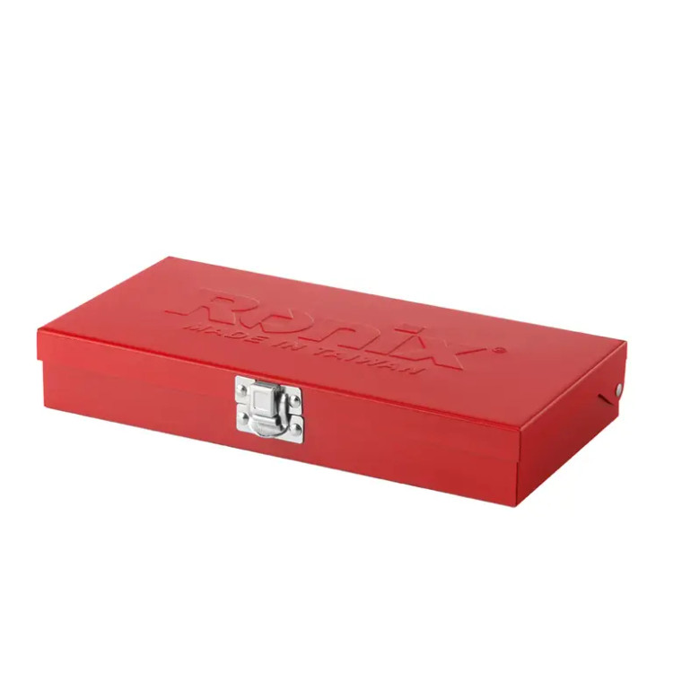 این مجموعه، با هدف سهولت استفاده و نگهداری، در یک جعبه فلزی و جعبه رنگی با طراحی رونیکس بستهبندی شده است. این جعبه علاوه بر حفاظت از قطعات در برابر آسیبهای ناشی از حملونقل، امکان مرتبسازی و نگهداری آسان ابزارها را برای کاربران فراهم میکند.