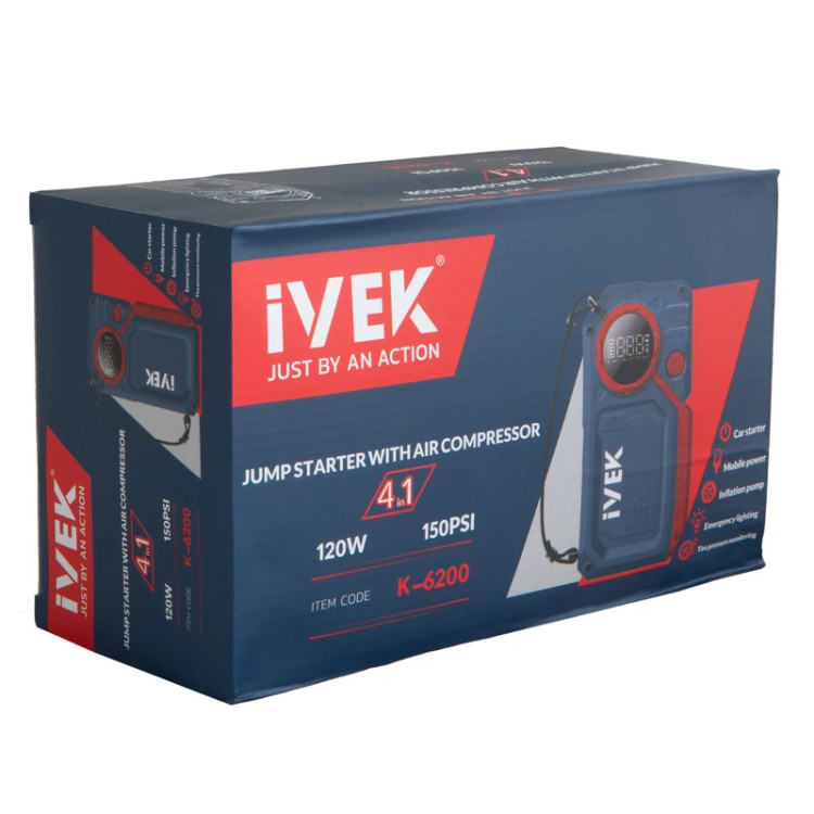مینی کمپرسور شارژی و جامپ استارتر ایوک مدل K-6200