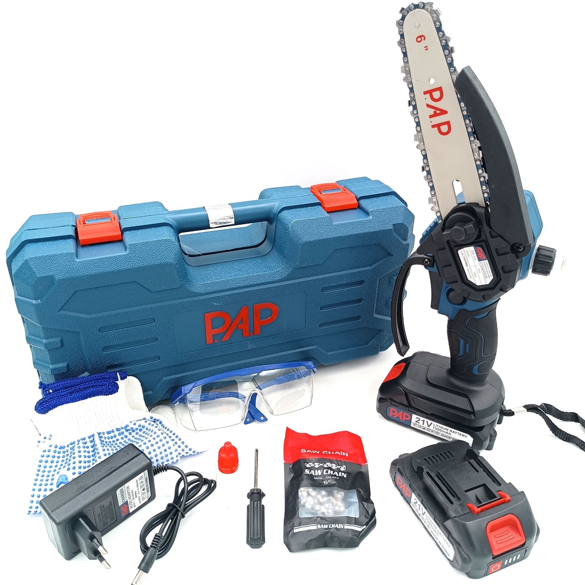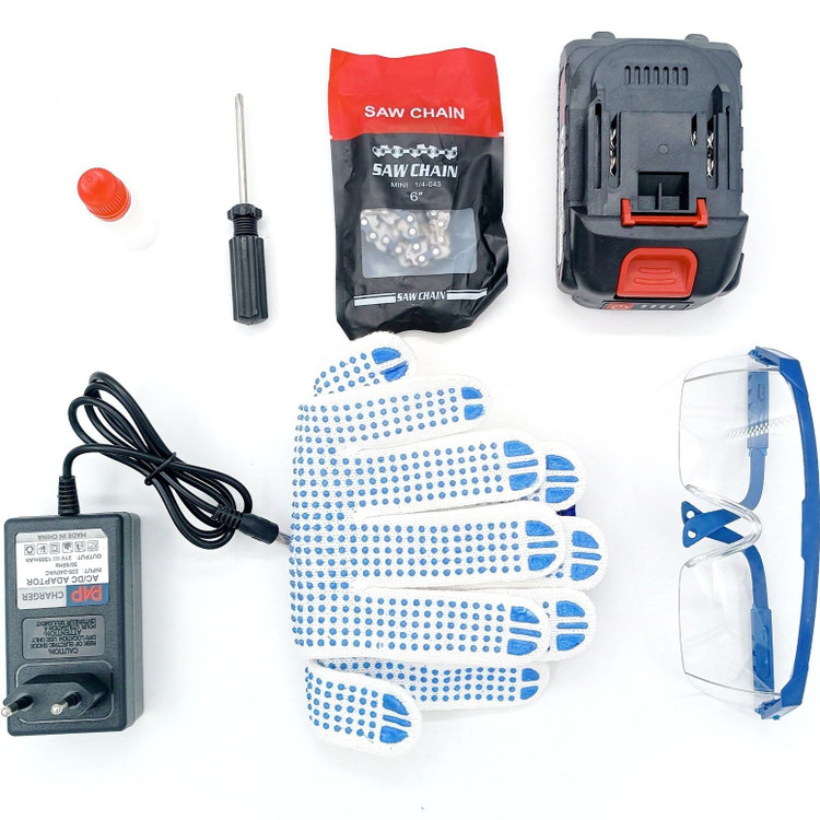 زنجیر یدکی، شارژر، عینک ایمنی و دستکش
